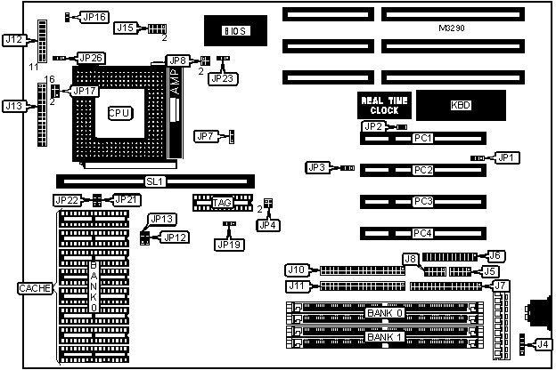 32-bit PCI slots (4), floppy drive interface, green PC connector, IDE interfaces (2), parallel port, PS/2 mouse interface, serial ports (2), VRM connector, cache slot, IR connector |