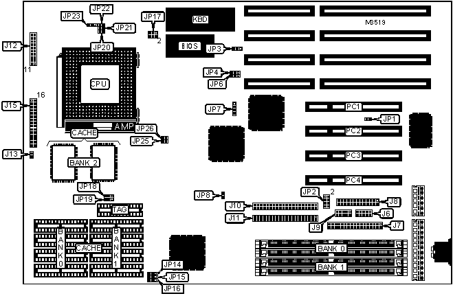 32-bit PCI slots (2), floppy drive interface, green PC connector, IDE interfaces (2), parallel port, serial ports (2), VRM connector, IR connector
