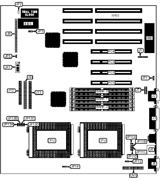 Note: Board accepts EDO memory. Board also accepts x 32 SIMMs. | |||