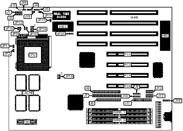 Note: Board accepts EDO memory. Board also accepts x 32 SIMMs. | ||