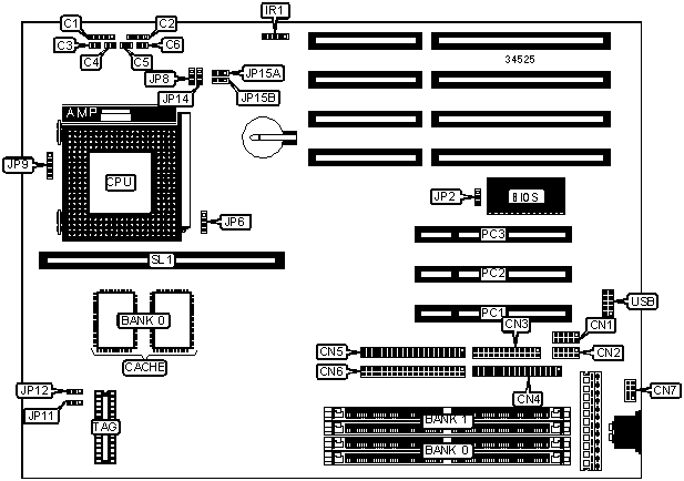 Note: Board accepts EDO memory. Board also accepts x 32 SIMMs. | ||