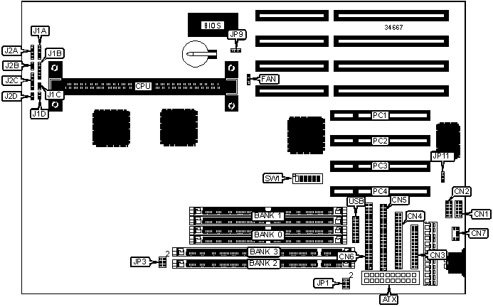 Note: The location of the factory configured jumpers are unidentified. | |||