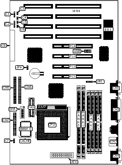 Note: Board accepts EDO & SDRAM memory. If SDRAM DIMMs are used in band 0 or bank 1, then bank 2 must be empty. | ||