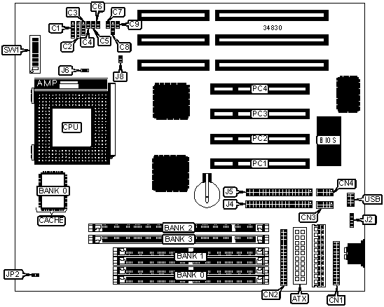 Note: Board accepts EDO & SDRAM memory.