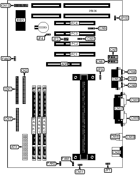 32-bit PCI slots (4), floppy drive interface, game/MIDI port, IDE interfaces (2), parallel port, PS/2 mouse port, serial ports (2), IR connector, USB connectors (2), ATX power connector, AGP slot, line in, line out, microphone in, audio in – CD-ROMs (2), SB link connector |