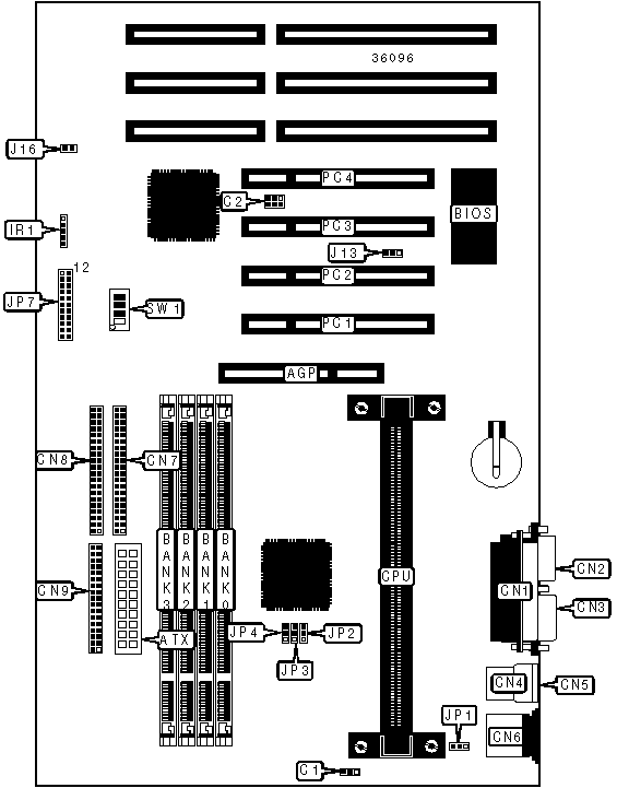 Note: 256KB/512KB cache is located on the Pentium II CPU. 128KB cache is located on the Celeron 300A & 333 CPU. |