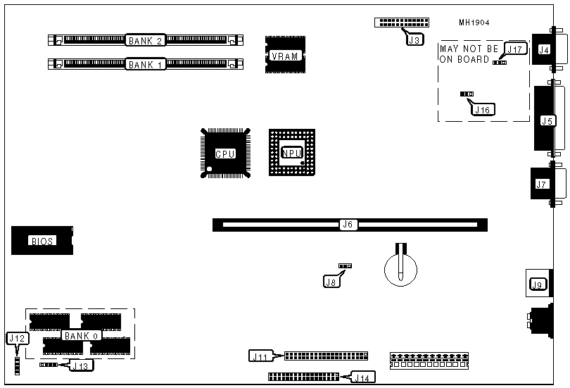 32-bit riser card slot, floppy drive interface, hard drive interface, parallel port, PS/2 mouse port, serial port, video port |