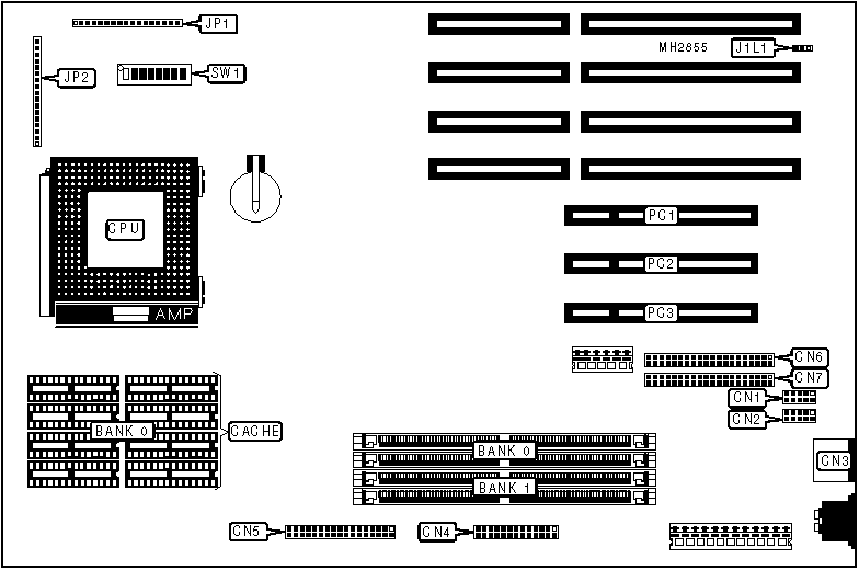 PS/2 mouse port, parallel port, serial ports (2), 32-bit PCI slots (3), green PC connector, floppy drive interface, IDE interfaces (2) |