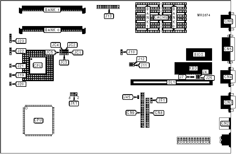PS/2 mouse port, parallel port, serial ports (2), VGA port, VGA feature connector, floppy drive interface, IDE interface, riser slot |