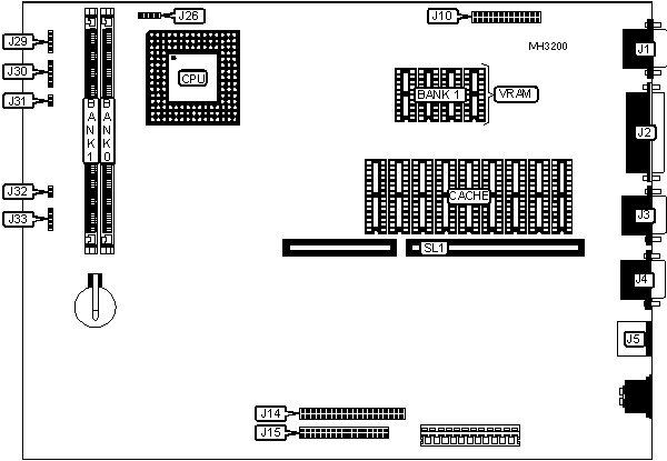 Note: The locations of J22, J23, J24 & J25 are unidentified. The location of the PQFP socket is unidentified. | ||||