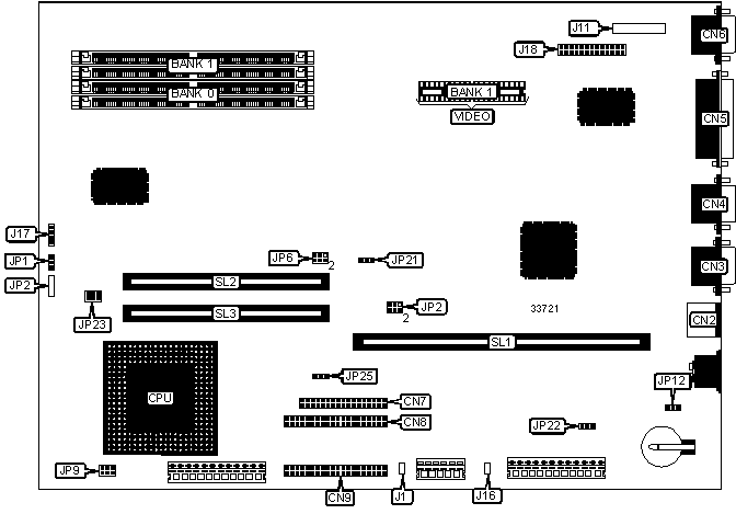 Note: Board accepts EDO memory. Board also accepts x 32 SIMMs. Banks are interchangeable. | ||