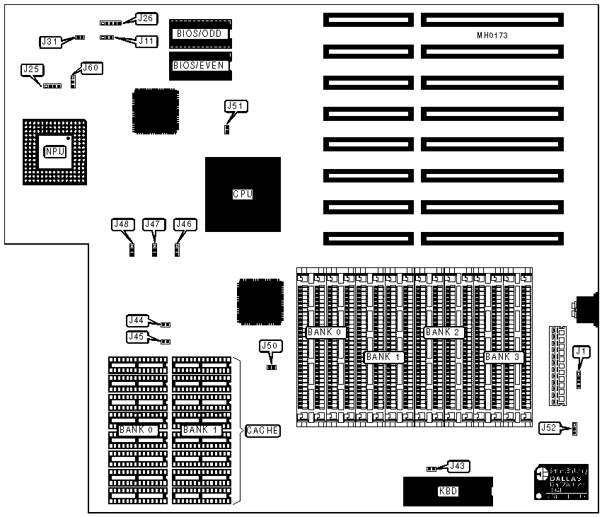 Note:The location of jumpers J50 & J51 are unidentified. |