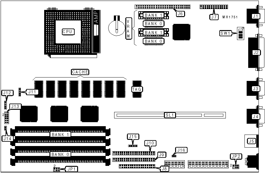32-bit VESA local bus, floppy drive interface, IDE interface, parallel port, PS/2 mouse port, serial ports (2), VGA feature connector, VGA port |