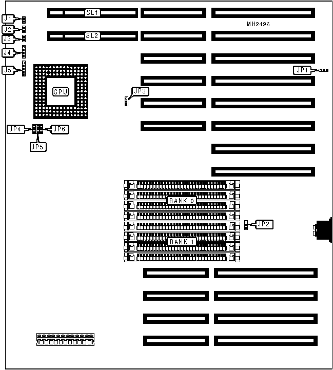 Note:This board will handle a 80486DX4 with an adapter supplied from Magus. The settings for this adapter are unidentified by the manufacturer. |