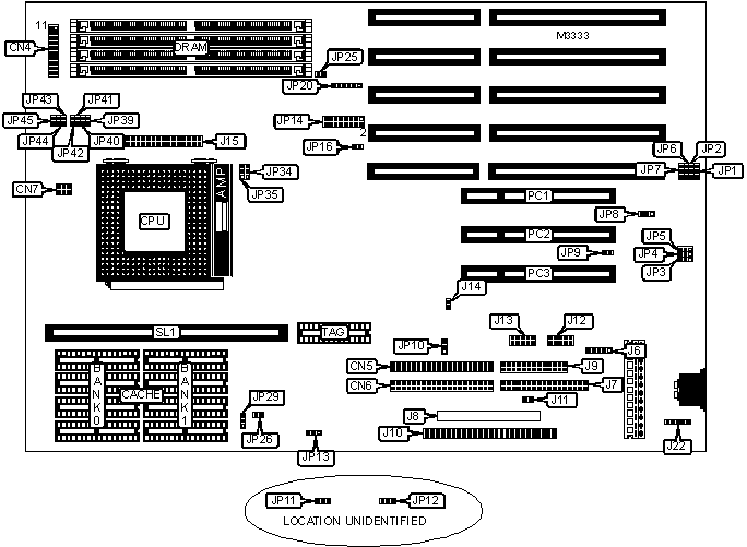 Note: Board accepts EDO memory. The orientation of the banks is unidentified. | ||