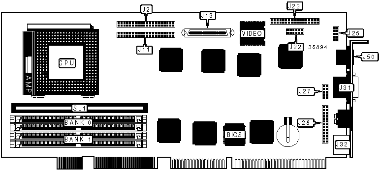 Note: Board accepts EDO memory.