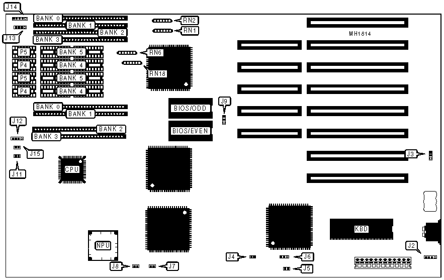 Note:The resistor packs RN1, RN2, RN6, and RN18 need only be installed if you are using DIP memory. | ||||||||