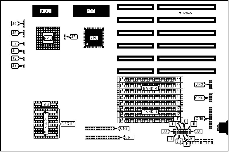 Floppy drive interface, IDE interface, parallel port, serial ports (2)