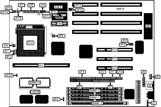 Note: Board accepts EDO memory. Bank 2 accepts DIMM modules | ||