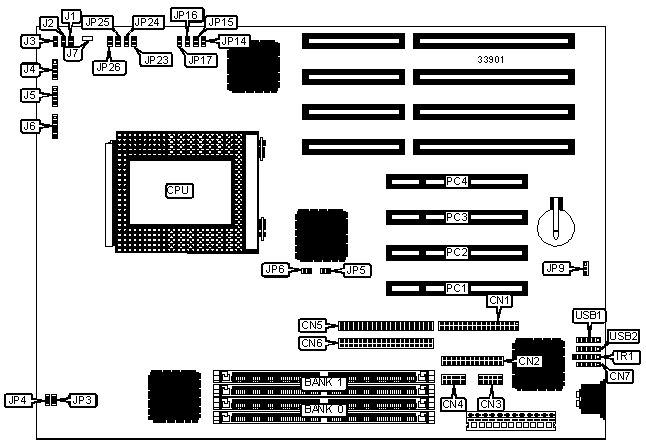 Note: Board accepts EDO memory. Board also accepts x 32 SIMMs.