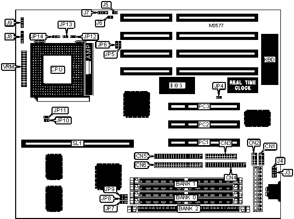 32-bit PCI slots (3), floppy drive interface, green PC connector, IDE interfaces (2), parallel port, serial ports (2), cache slot, VRM connector, USB connectors (2) |