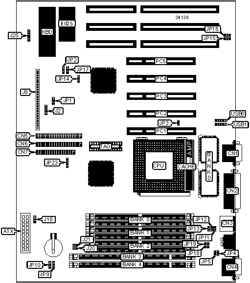 32-bit PCI slots (5), floppy drive interface, green PC connector, IDE interfaces (2), parallel port, PS/2 mouse port, serial ports (2), IR connectors (2), USB connectors (2), ATX power connector |