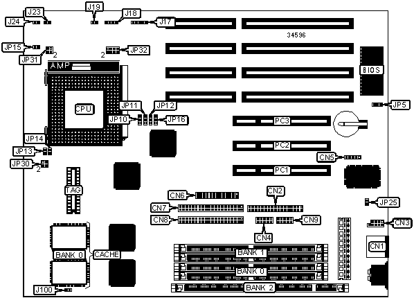 Note: Board accepts EDO memory. Banks are interchangeable. | ||