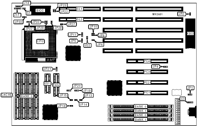 32-bit VESA local bus slots (2), 32-bit PCI slots (4) |