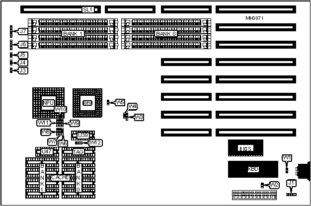 Note: To configure cache main memory over 16MB, install (1) 16K x 4 chip in U39. | |