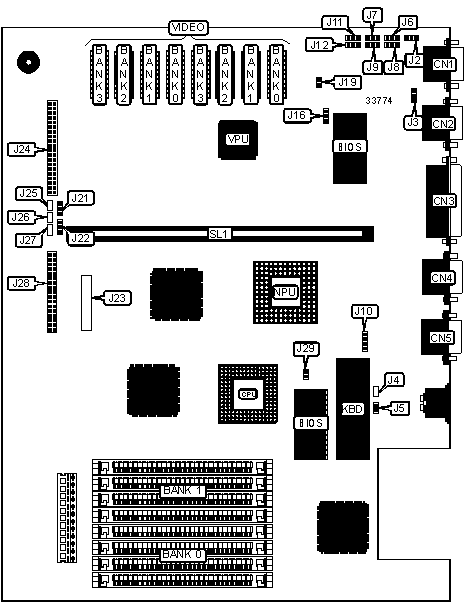 Floppy drive interface, game port, IDE interface, parallel port, serial ports (2), VGA port, riser slot, modem connector |