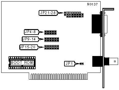 Note:If the card is on either end of a linear bus network segment, the onboard terminator may be used instead