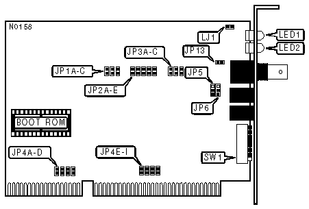 Note: If the card is on either end of a linear bus network segment, the onboard terminator may be used instead |