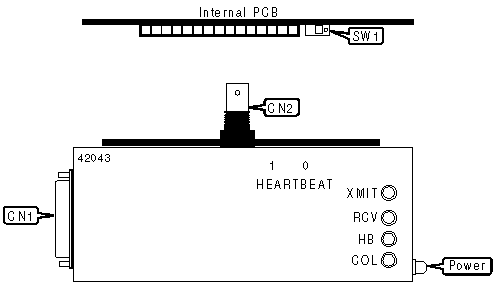 AUI transceiver via DB-15 port RG-58A/U 50ohm coaxial |