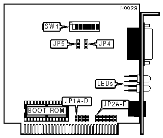 Note 1 :Used when the Link Test signal is enabled (JP5)Note 2 :LED remains on when the Link Test signal is disabled (JP5)Note 3 :When the Link Test signal is enabled and the card is connected to a hub that does not use theLink Test signal, the user should disable the Link Test signal. | ||
