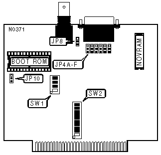 Note:The boot ROM revision number is, in most cases, displayed when the system is booted. If the switch is set to On when it should be set to Off, the following message will be displayed: "Wrong Boot ROM Version (1.0, 2.0, or 3.0L) Please change config switch on LAN card". If the switch is set to Off when it should be set On, the card will not be recognized, and will not log into the network. | ||