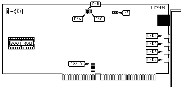 Note:Many of the options are configured using the setup utility provided with the card. To reset those configurations to the factory defaults, move E1 to the Reset position (pins 1 & 2 closed)