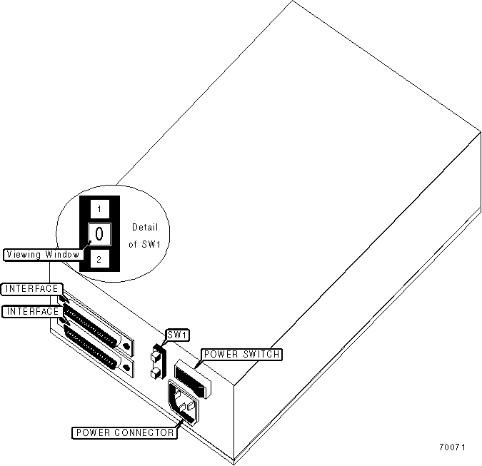 Note: SCSI ID is selected by activating SW1 until the desired number is displayed in the viewing window.