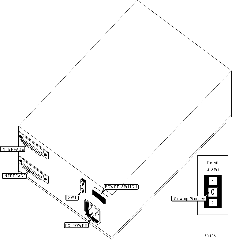Note: SCSI ID is selected by activating SW1 until the desired ID number is displayed in the viewing window. |