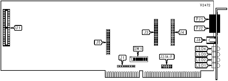 Note: A total of 32 base address settings are available. The switches are a binary representation of the decimal memory addresses. SW1/8 is the Most Significant Bit and switch SW1/4 is the Least Significant Bit. The switches have the following decimal values: SW1/8=512, SW1/7=256, SW1/6=128, SW1/5=64, SW1/4=32. Turn off the switches and add the values of the switches that are off to obtain the correct memory address. (Off=1, On=0) | ||||||