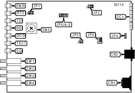 Note: Modem can be made to perform self-test by holding down SW2 and SW4. The DCD, TEST, and SQ LEDs should go on, and the RD LED should go off.
