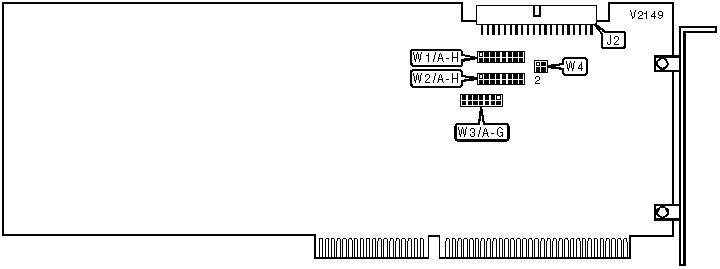 Note: A total of 127 base address settings are available. The jumpers are a binary representation of the decimal memory addresses. W5/A is the Most Significant Bit and jumper W5/G is the Least Significant Bit. The jumpers have the following decimal values: W5/A=512, W5/B=256, W5/C=128, W5/D=64, W5/E=32, W5/F=16, W5/G=8. Open the jumpers and add the values of the open jumpers to obtain the correct memory address. (Open=1, Closed=0)