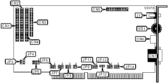 Note: The exact orientation of CN1 - CN4 is unidentified. This card supports Panasonic, Mitsumi, Sony, & IDE CD-ROM interfaces. | |||