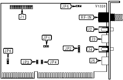 Audio in, audio out/line out, external IR connector, internal audio out, internal IR connector, S-video, tuner in, VGA feature connector, video in
