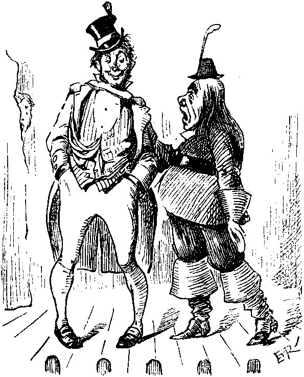 The G.G. (before figure of Aladdin's Uncle selling new lamps for old). Here you are, you see! "Ali Baba," got 'em all here, you see. Never read your "Arabian Nights," either! Is that the way they bring up boys nowadays!