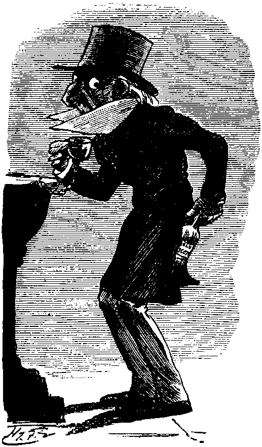 Gladstonian Enthusiast (to Friend, who, with the perverse ingenuity of patrons of Wax-works, has been endeavouring to identify the Rev. JOHN WESLEY among the Cabinet in Downing Street). Oh, never mind all that lot, BETSY; they're only the Gover'ment! Here's dear Mr. and Mrs. GLADSTONE in this next! See, he's lookin' for something in a drawer of his side-board—ain't that natural? And only look—a lot of people have been leaving Christmas cards on him (a pretty and touching tribute of affection, which is eminently characteristic of a warm-hearted Public). I wish I'd thought o' bringing one with me!
