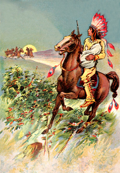 "The bad Indians are coming," he added, "and if we stay here they will shoot us. I don't think," he said, glancing around, "that [16]they are anywhere near; but they are likely to come any minute, so we won't wait."