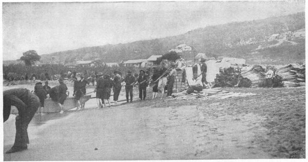 And, indeed, at this moment the crew of the "Saratoga" needed the presence of their captain to cheer them on to further exertion. The red-hot shot of the "Confiance" had twice set fire to the American ship. (p. 565) The raking fire from the "Linnet" had dismounted carronades and long guns one by one, until but a single serviceable gun was left in the starboard battery. A too heavy charge dismounted this piece, and threw it down the hatchway, leaving the frigate without a single gun bearing upon the enemy. In such a plight the hearts of the crew might well fail them. But Macdonough was ready for the emergency. He still had his port broadside untouched, and he at once set to work to swing the ship round so that this battery could be brought to bear. An anchor was let fall astern, and the whole ship's company hauled in on the hawser, swinging the ship slowly around. It was a dangerous manœuvre; for, as the ship veered round, her stern was presented to the "Linnet," affording an opportunity for raking, which the gunners on that plucky little vessel immediately improved. But patience and hard pulling carried the day; and gradually the heavy frigate was turned sufficiently for the after gun to bear, and a gun's crew was at once called from the hawsers to open fire. One by one the guns swung into position, and soon the whole broadside opened with a roar.