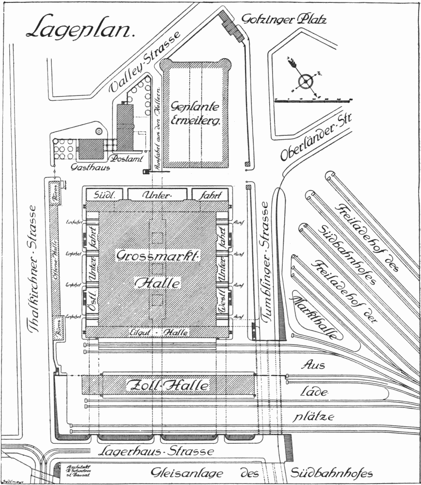 Berlin's two million people since 1886 have had a splendid terminal market on the Alexanderplatz, consisting of two great adjoining halls, with direct access to the city railroad. One of these halls is entirely wholesale, while the other is partly wholesale and partly retail. Meat, fish, fruit and vegetables are dealt with under the same roof by upwards of 2,000 producers and dealers.