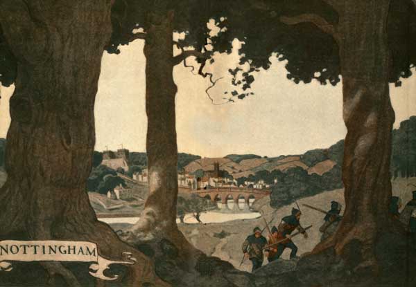 ROBIN AND HIS MOTHER GO TO NOTTINGHAM FAIRThen the King's Forester turned on his heel and strode back towards Locksley. Once he paused and faced about to wave his cap to them: then his figure vanished into the green of the trees.