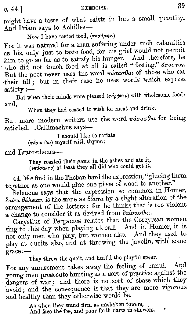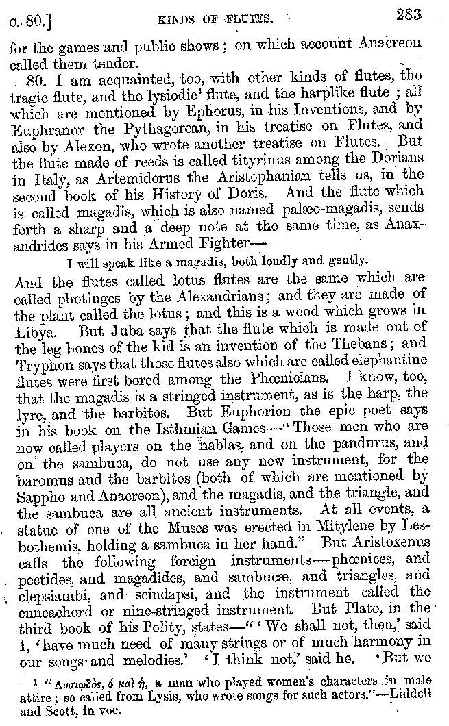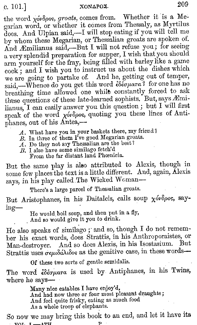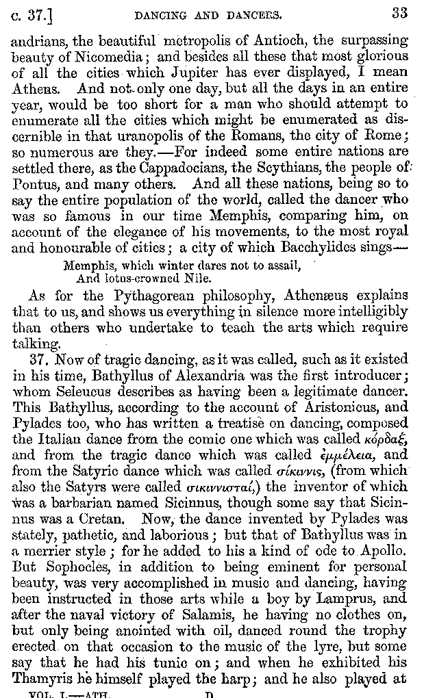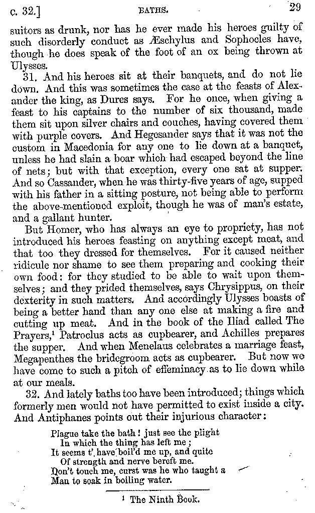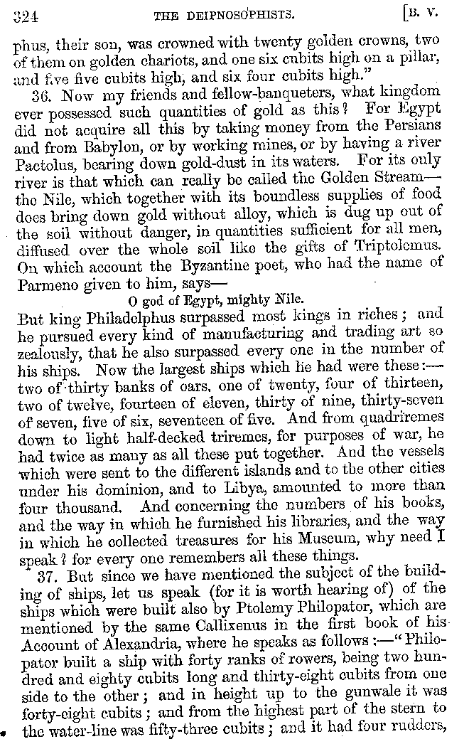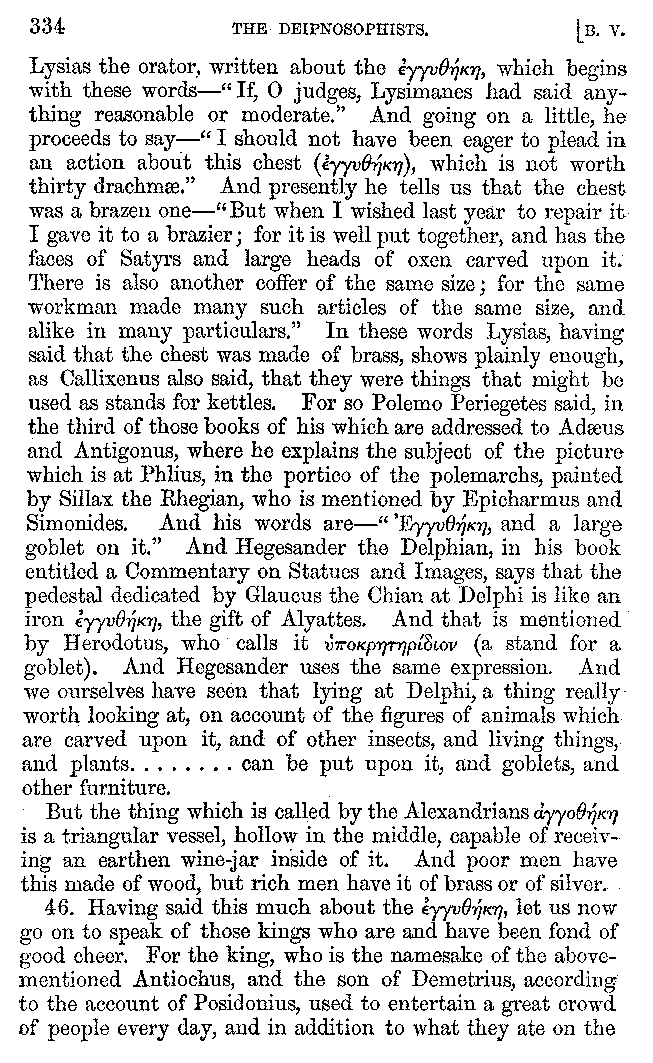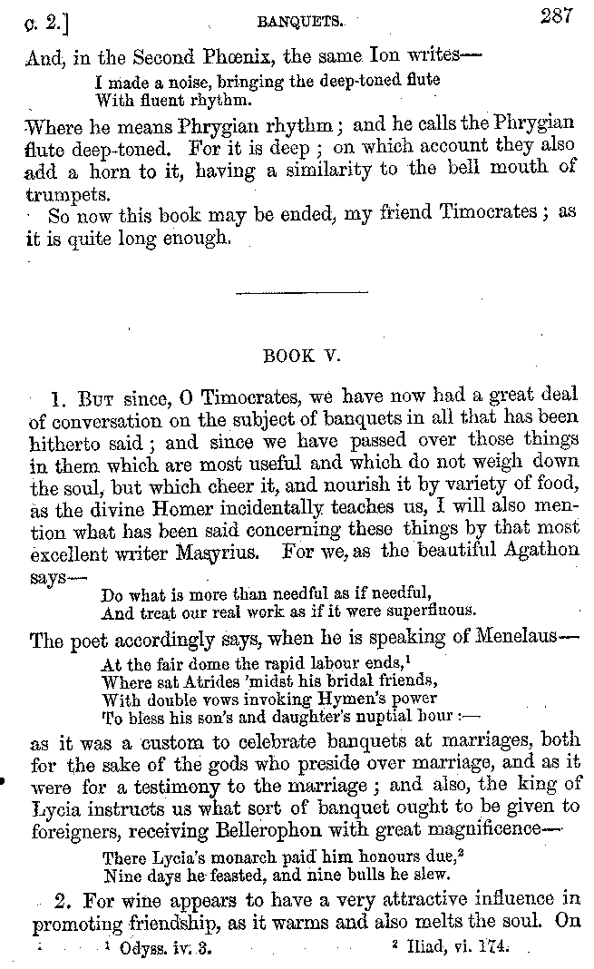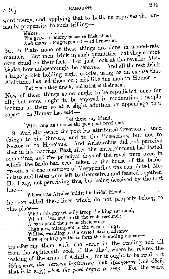 | Banquets—Baths—Banquets—The Banquets described by Homer—Banquets—The Palaces of Homer's Kings—Conversation at Banquets—Customs in Homer's Time—Attitudes of Guests—Feast given by Antiochus—Extravagance of Antiochus—Ptolemy Philadelphus—Procession of Ptolemy Philadelphus—A large Ship built by Ptolemy—The Ship of Ptolemy Philopator—Hiero's Ship—Banquet given by Alexander—Athenio—The Valour of Socrates—Plato's account of Socrates—Socrates—The Gorgons | 287-352 |